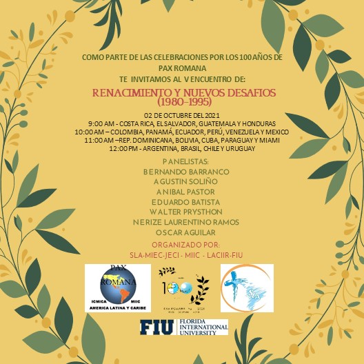 Amigos/as, este sábado 02 de octubre continuamos con el quinto evento de memoria de nuestros movimientos MIEC-MIIC en América Latina y El Caribe. Este conversatorio girará en torno al “Renacimiento y los Nuevos Desafíos (1980-1995)” ¡Están cordialmente invitados!.